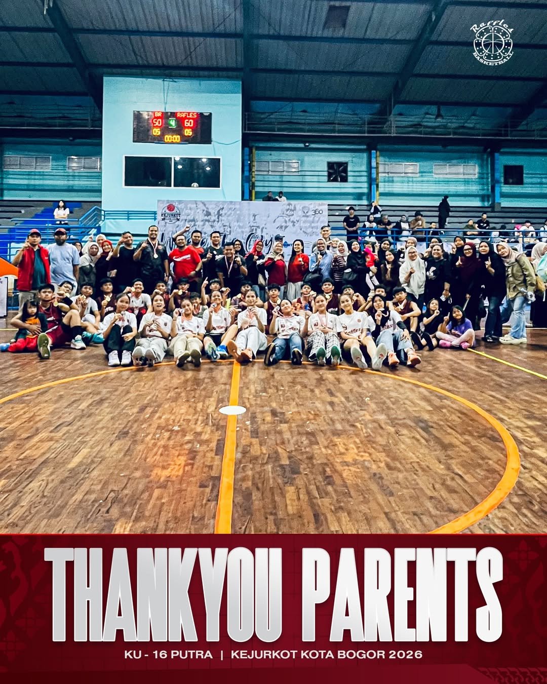 Selamat untuk KU16 Putra Raffles Basketball Club yang berhasil keluar sebagai JUARA 1 di Kejurkot Kota Bogor 2026! 🔥